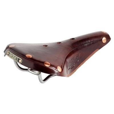 Brooks Saddles B17 is our flagship model, ideal for long distance sports touring, trekking and atb use. It has been on the market for over 100 years, being featured in as early as the 1898 catalogue . The frame is made of titanium rails, and the antique brown leather seat features hand hammered copper rivets. The saddle weighs 410 grams.